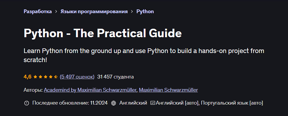 Он используется практически любой важной компанией — будь то Google, Amazon или Facebook. Он используется для запуска веб-приложений, скриптов, настольных программ и алгоритмов машинного обучения. Этот курс устанавливает основы для всех этих прецедентов!