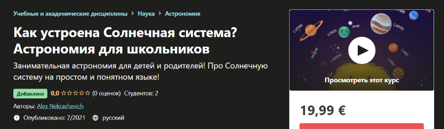 [Udemy] Как устроена Солнечная система? Астрономия для школьников [Alex Nekrashevich]