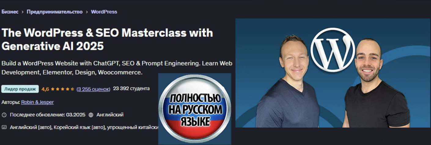 [Udemy] Мастеркласс по WordPress & SEO с помощью генеративного ИИ [Robin & Jesper]