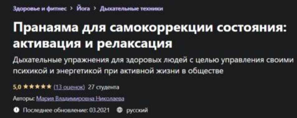 [Udemy] Пранаяма для самокоррекции состояния: активация и релаксация [Мария Николаева]