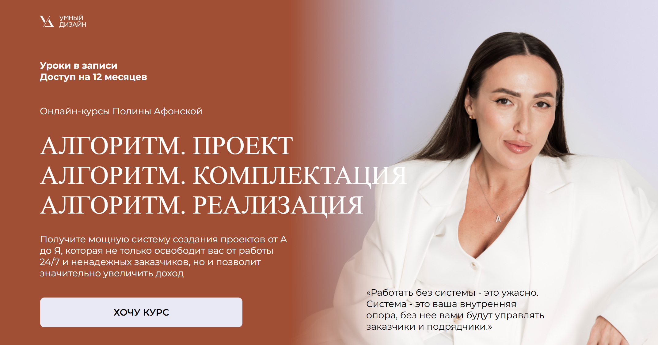 [Умный Дизайн] Алгоритм. Пакет из 3 курсов Проект+Комплектация+Реализация [Полина Афонская]