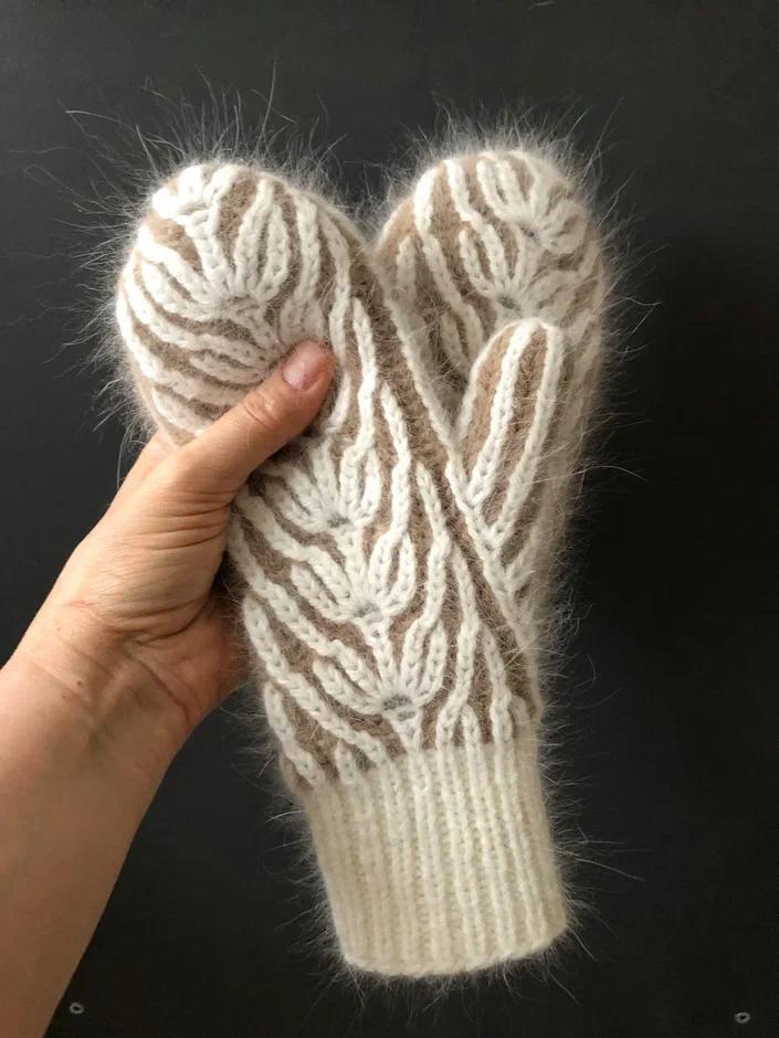 Для вязания оригинальных варежек я использовала пряжу с различными составами, средний метраж 90-100м/50гр (или 180-200м/100гр):