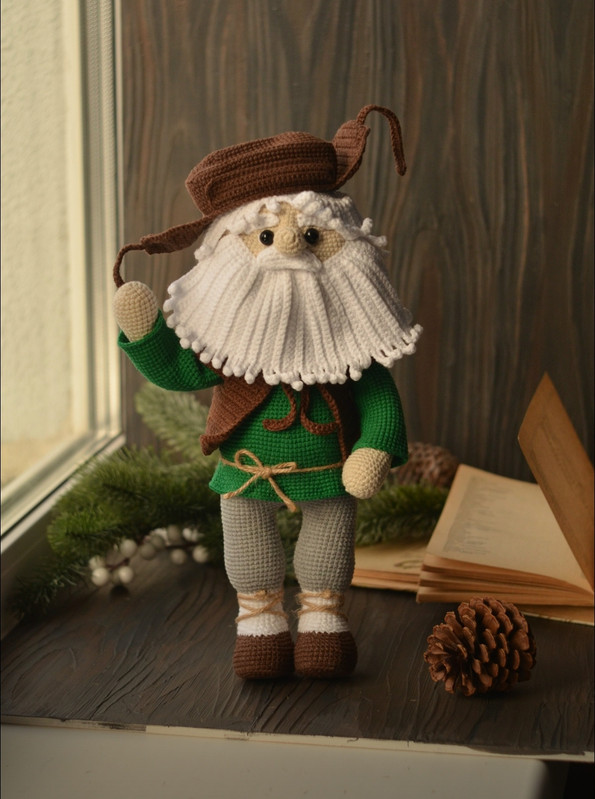МК доступен для приобретения на русском языке. В него входит сам Домовой, шапка-ушанка и жилетка. В игрушке каркасные ручки. Домовой не маленький, рост у него 31 см.