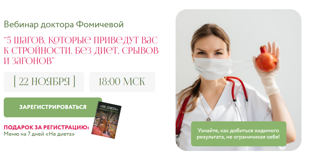 Я познакомлю вас с ним на вебинаре «5 шагов, которые приведут вас к стройности. Без диет, срывов и загонов»