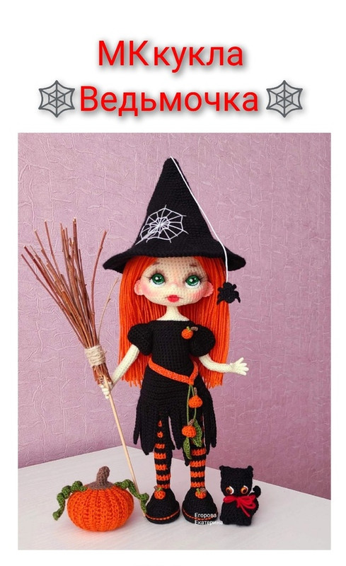 Описание вязания куклы, одежды, обуви, шляпы, паучка, тыквы.