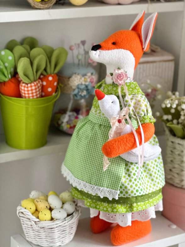 МК включает в себя список материалов, выкройки тела и одежды, процесс работы в виде фото с комментариями, что поможет Вам сшить такую ЛИСУ самостоятельно