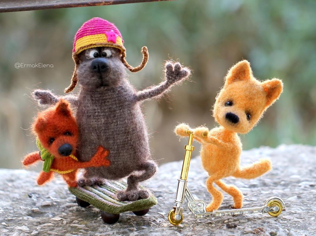 В мк дано описание вязания ВОЛКА и ЛИСА, а также аксессуаров — скейта, шлема и рюкзака.