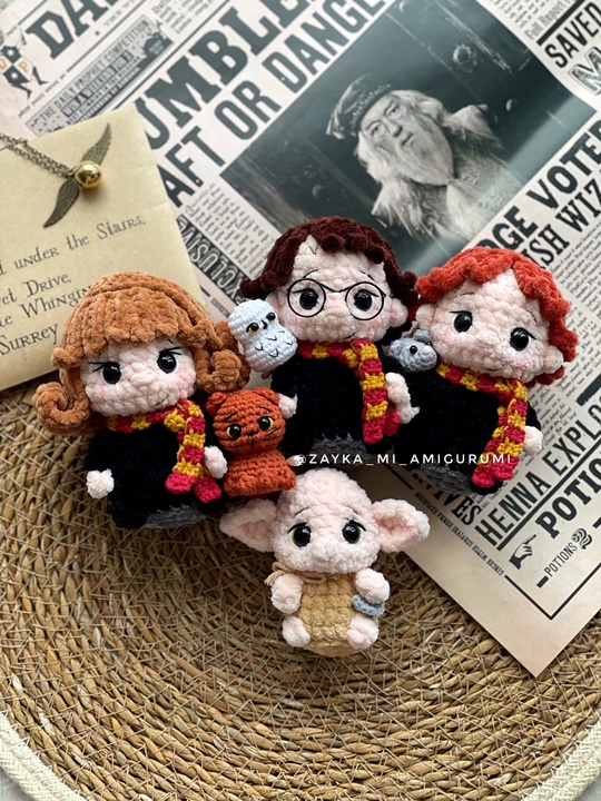 Цельновязанные игрушки, пришиваются/приклеиваются только волосы.