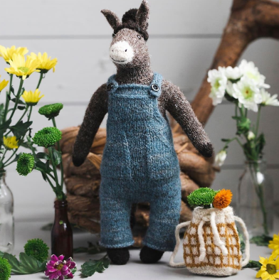 Садовод ослик Горацио в комбинезоне и с рюкзаком — бесшовная игрушка из коллекции Mouche & Friends.