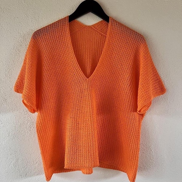 Комфортный и простой в исполнении летний топ с V-горловиной из мягкой льняной пряжи.