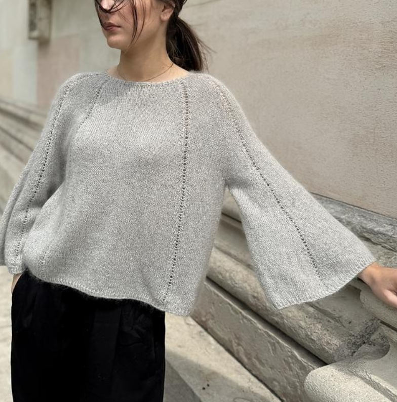 [Вяжи.ру] Пуловер с рукавами колокол лицевой гладью сверху вниз Breath Blouse [Гадрэн Фэсл]