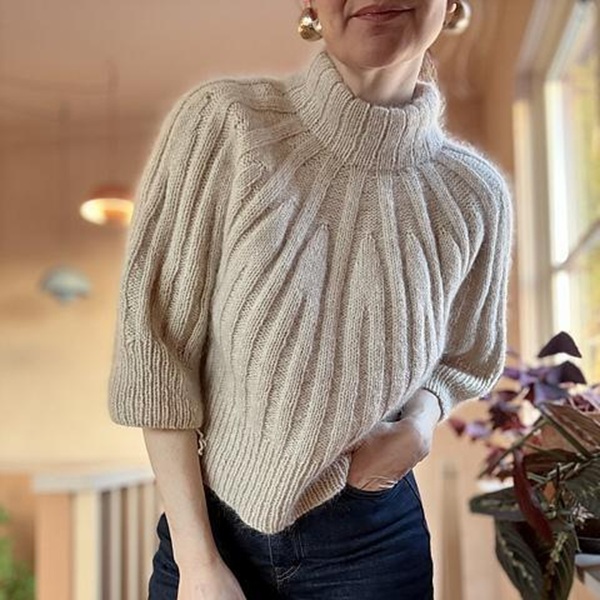 Элегантный пуловер с горловиной-гольф и с рукавом три четверти украсит любой образ.