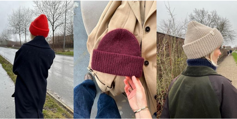 Например, серая шапка связана из пряжи Peer Gynt от Sandnes Garn в цвете марципан (2321).