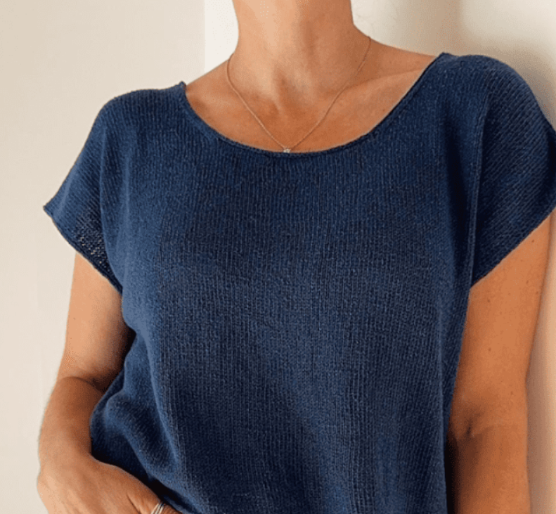 [Вяжи.ру] Вязаная спицами простая шелковая футболка Drop Cut Tee Lite [Caidree]