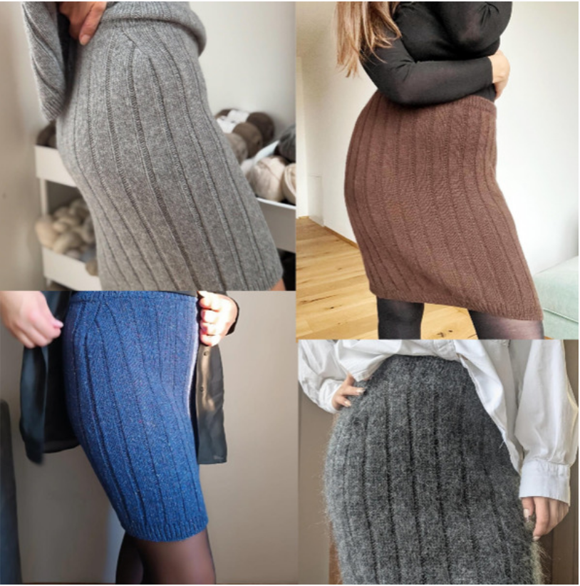 Описание предложено для широкого размерного ряда, для 10-ти размеров. Рекомендован отрицательный припуск по линии бедер: минус 10 см. Выбирайте размер, ориентируясь на финальную окружность юбки по линии бедер, она должна быть меньше прибл. на 10 см, чем окружность Ваших бедер. Но при желании Вы можете связать и более свободную юбку.