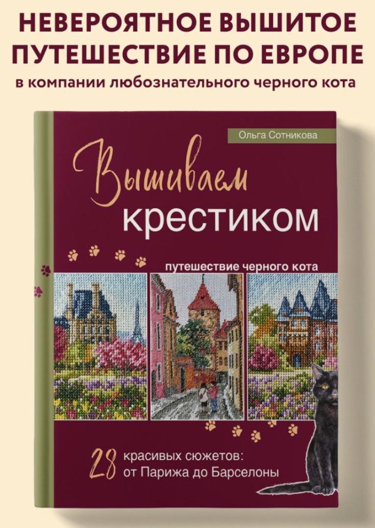 Автор книги Ольга Сотникова — художница, вышивальщица и автор схем для вышивания с 30-летним стажем. В этой книге она собрала красочную коллекцию дизайнов, вдохновленную невероятными приключениями веселого черного кота. Берите нитки, канву и иголку и отправляйтесь в полное ярких эмоций путешествие по европейским городам с кошачьей грацией