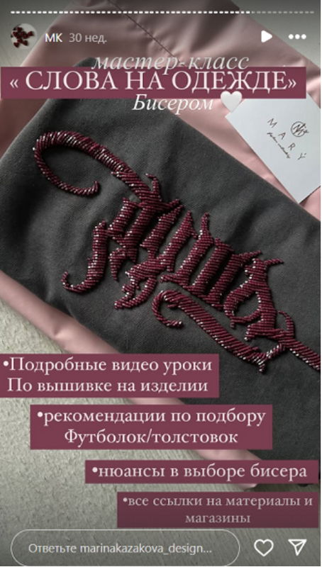 Вышивка слов на одежде бисером [Марина Казакова]