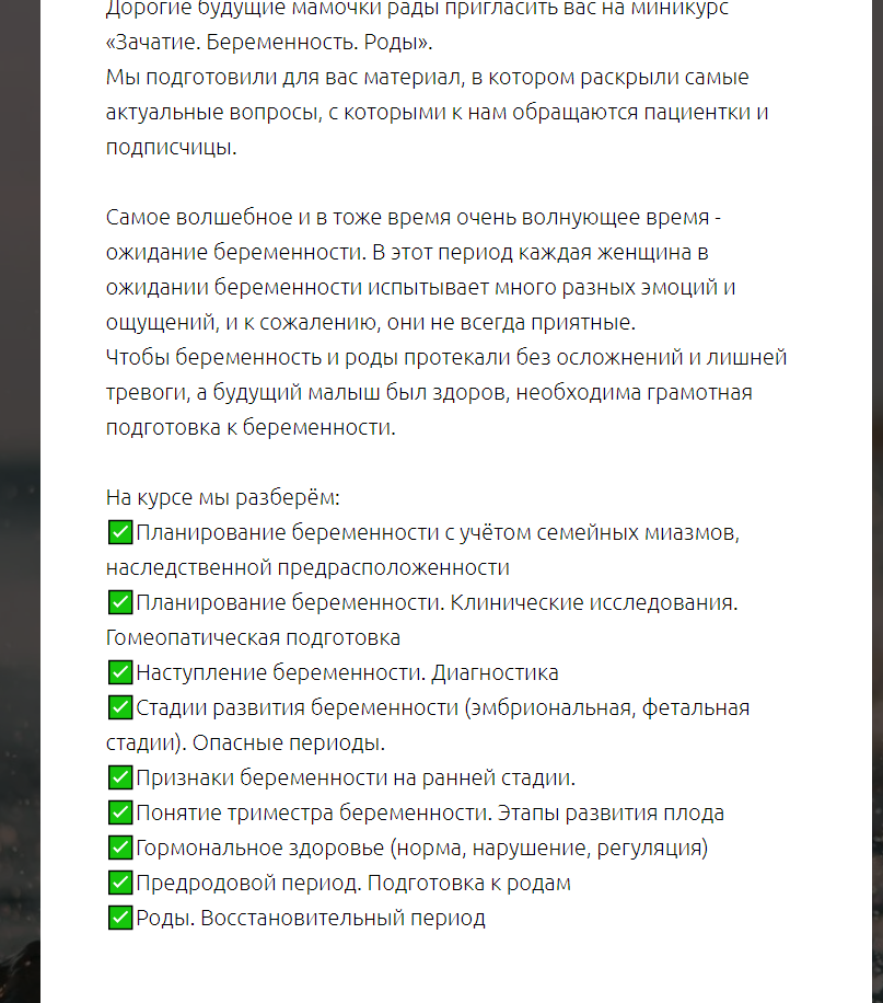 Дорогие будущие мамочки рады пригласить вас на миникурс «Зачатие. Беременность. Роды».