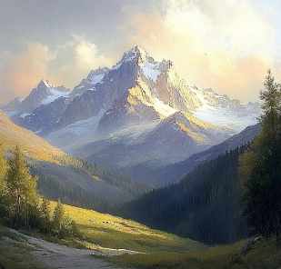 Величественный горный пейзаж, залитый светом и тишиной. Научитесь писать воздушную перспективу, глубину и красоту альпийских вершин.
