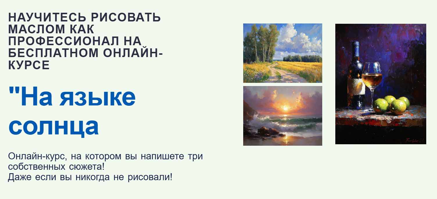 Всего за три дня вы создадите три атмосферные работы, наполненные светом, цветом и живыми эмоциями. Даже если вы впервые возьмёте кисть в руки — у вас обязательно получится!
