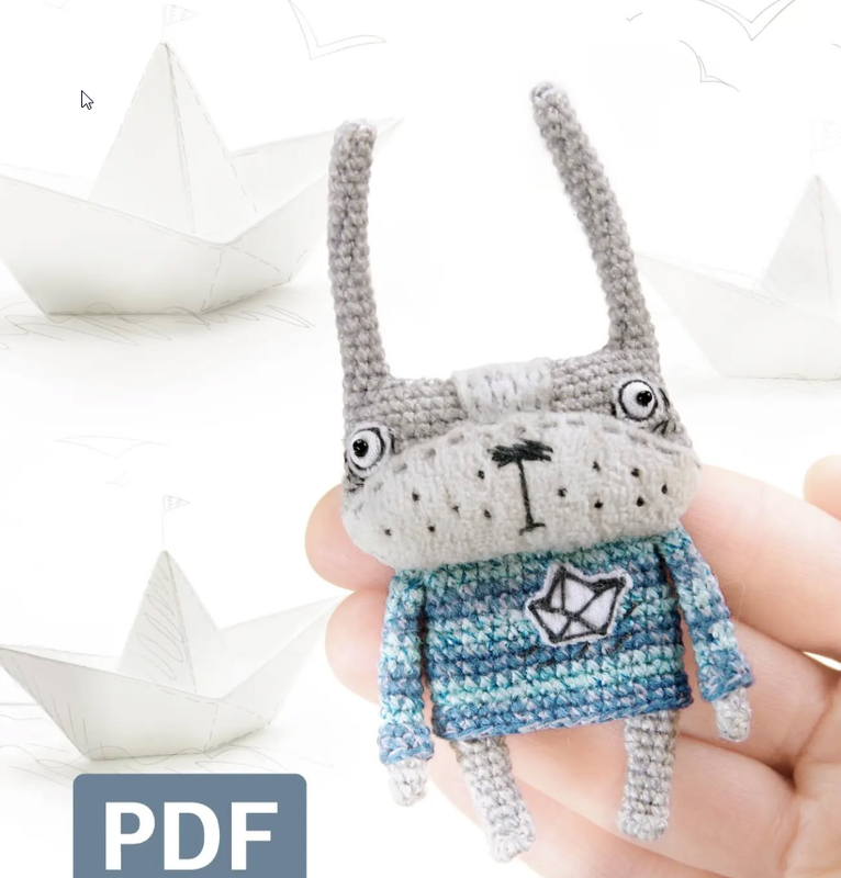 Размер готового зайца из указанной пряжи — 5х10 см по крайним точкам. Уровень сложности — всё просто. МК в формате пдф.