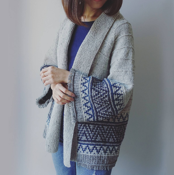 Стильный свободный кардиган прямого силуэта в стиле бохо с мозаичным жаккардом вяжется спицами сверху-вниз одной деталью. Практически классический крой и стандартная длина позволят носить его с любыми комплектами одежды, а жаккард по низу, так похожий на узоры индейцев, сделает его необычным и красивым.