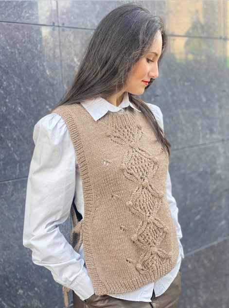 По данному видео мастер-классу Вы можете связать жилет-манишку с ажурным узором в технике японское плечо