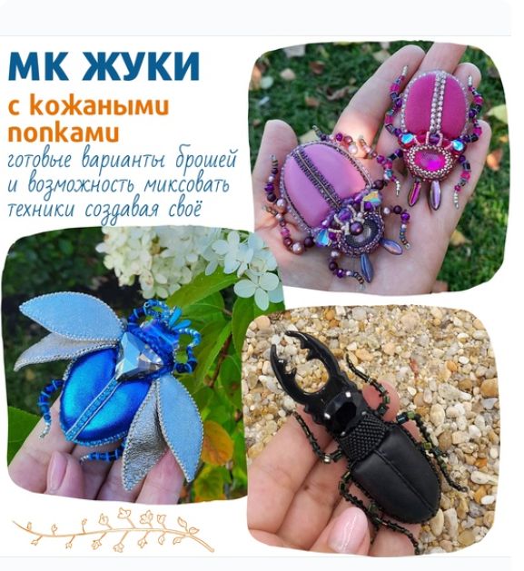 МК ЖУКИ С КОЖАНЫМИ ПОПКАМИ брошь вышивка