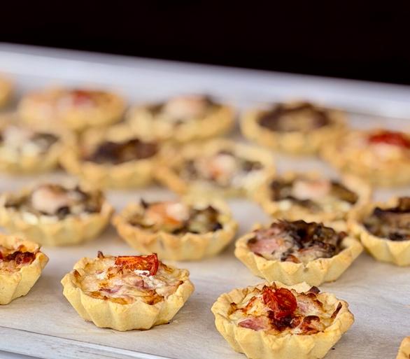 Хрустящие песочные тарталетки служат изысканным съедобным «сосудом» для трёх насыщенных начинок под золотистой сырной корочкой: